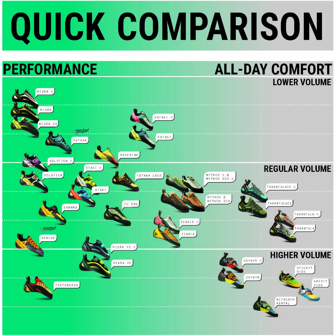 The soft unlined leather upper adapts to whatever shape your foot is and it is great for all day multi-pitch routes where your feet tend to swell. This is the perfect shoe for crack climbing, with its low profile toes, flat fit, and the overall neutral round shape of the shoe.