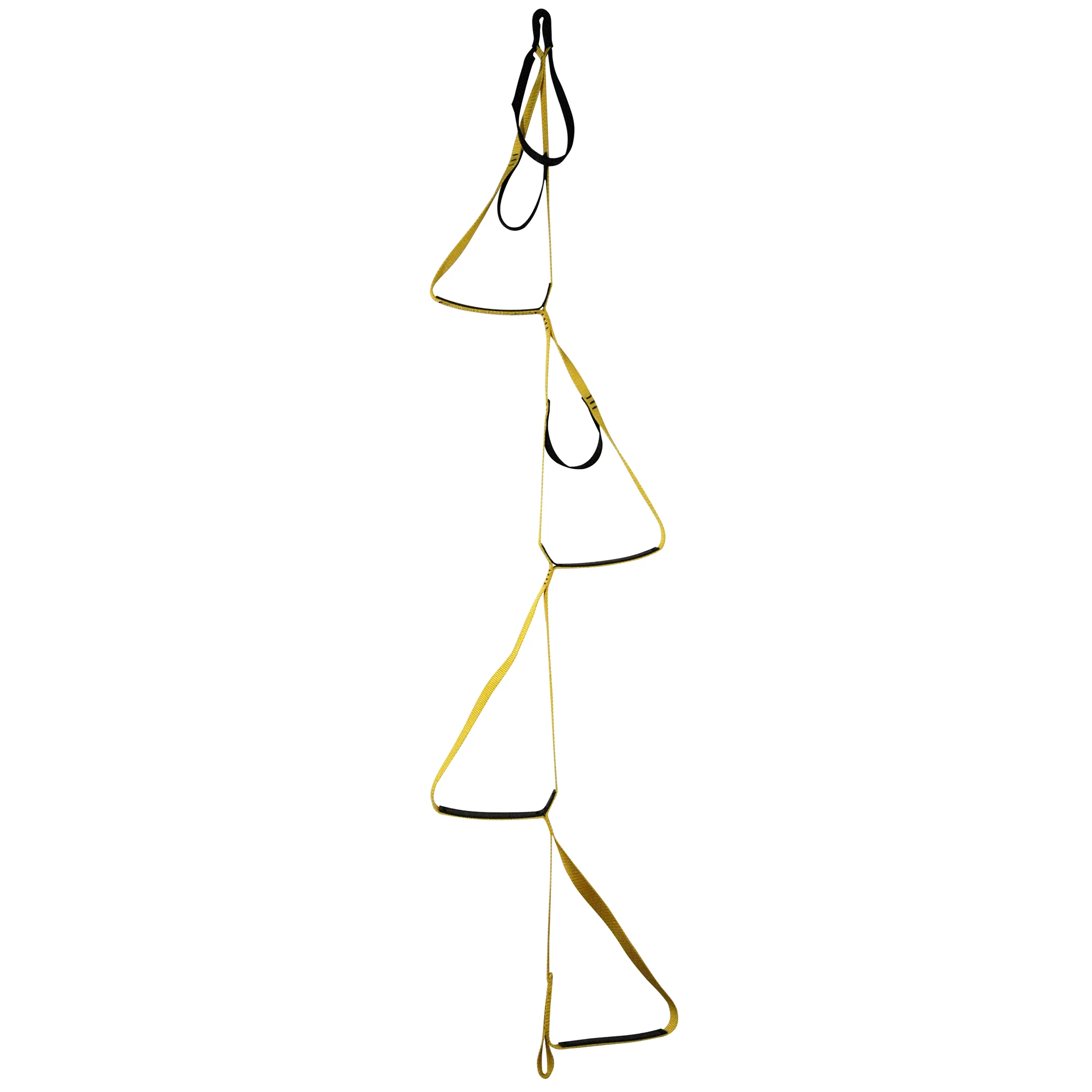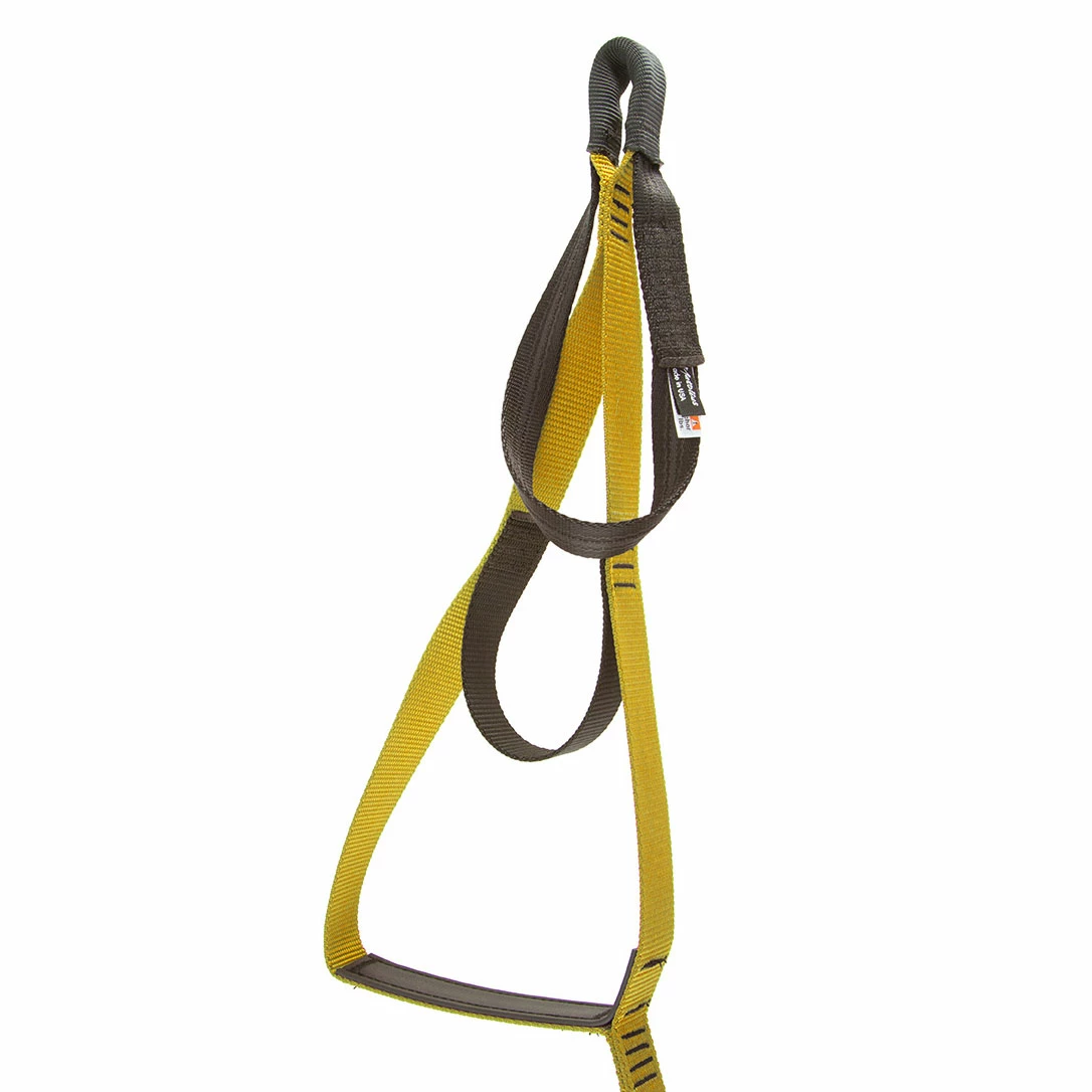 Metolius’ Aiders are traditional aid-climbing etriers made from robust 1″ tubular nylon webbing, with Biothane™ step stiffeners for easy foot placement. All feature two cheater top steps, 4000 lb. wrist loop/clip-in point and bottom loop so aiders can be joined on long reaches. The 4-Step version is ideal for those looking to save weight, while the 5-Step gives you added length for difficult nailing or hooking.