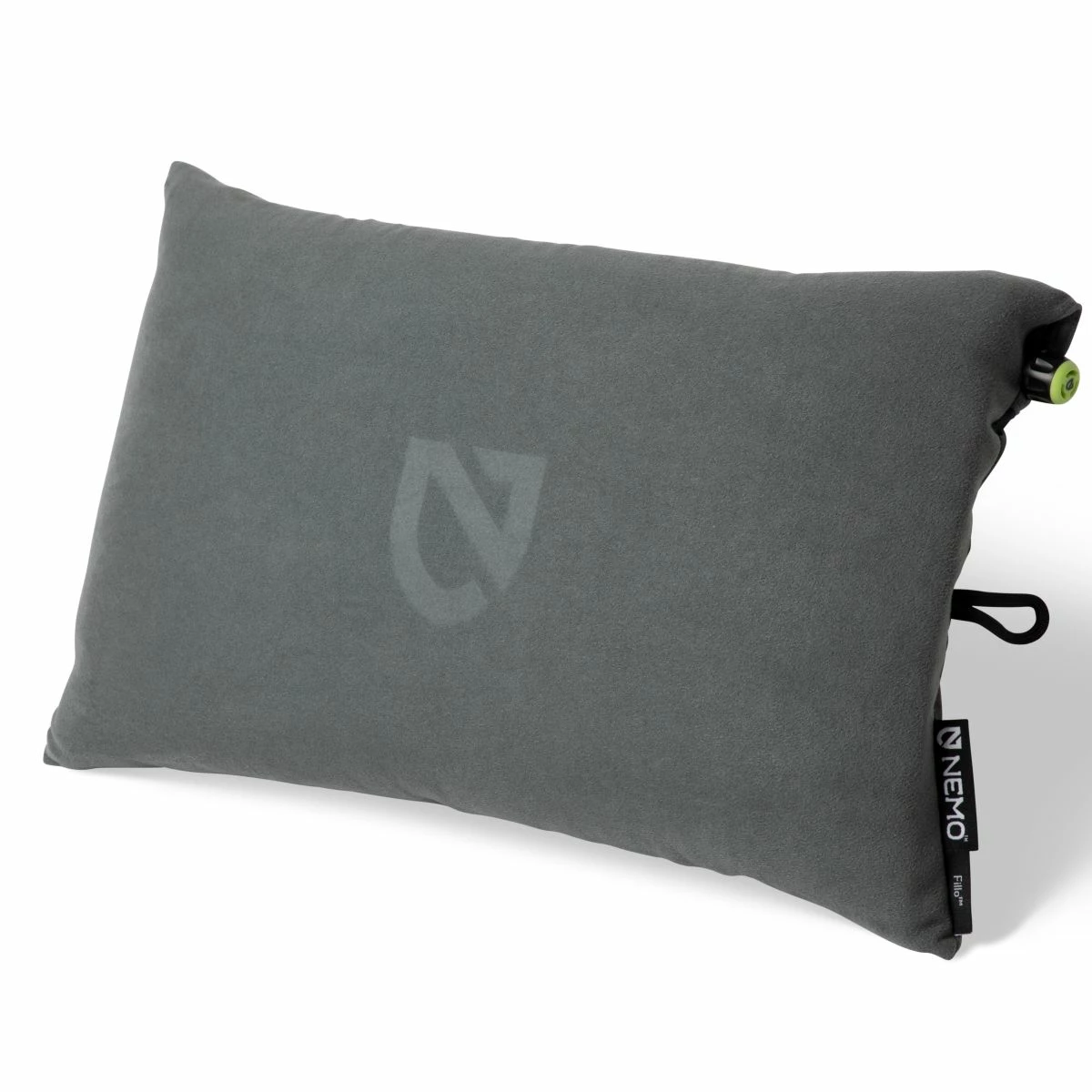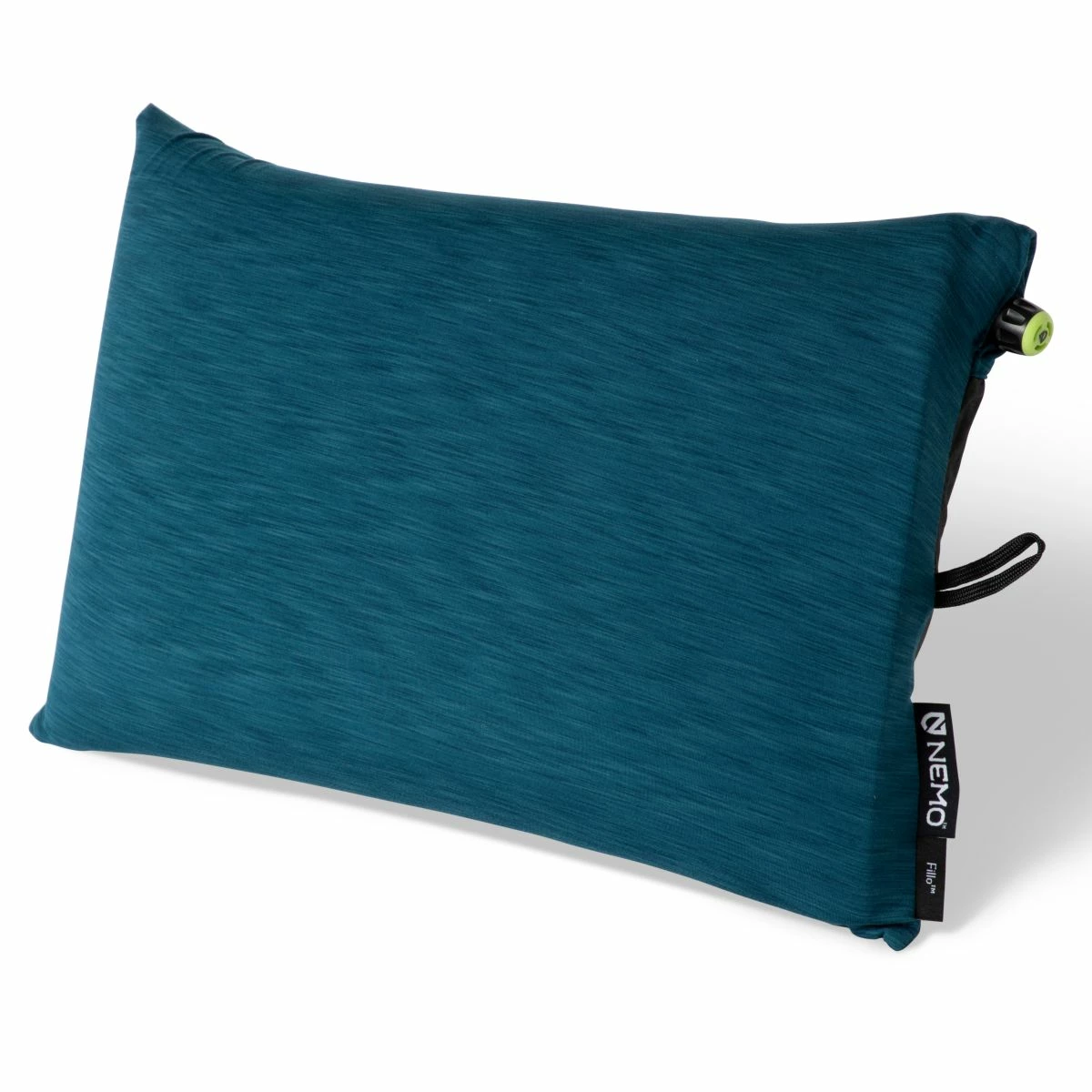 The award-winning Fillo backpacking and camping pillow brings clever design to an often-overlooked piece of gear: the humble camp pillow. NEMO redesigned the classic pillow, using a combination of a baffled air cell, thick luxury foam, a soft, washable microsuede or jersey cover, and an ergonomic valve. The result is a pillow that is soft and yielding like your pillow at home, feels big when cradling your head, yet packs surprisingly small.
